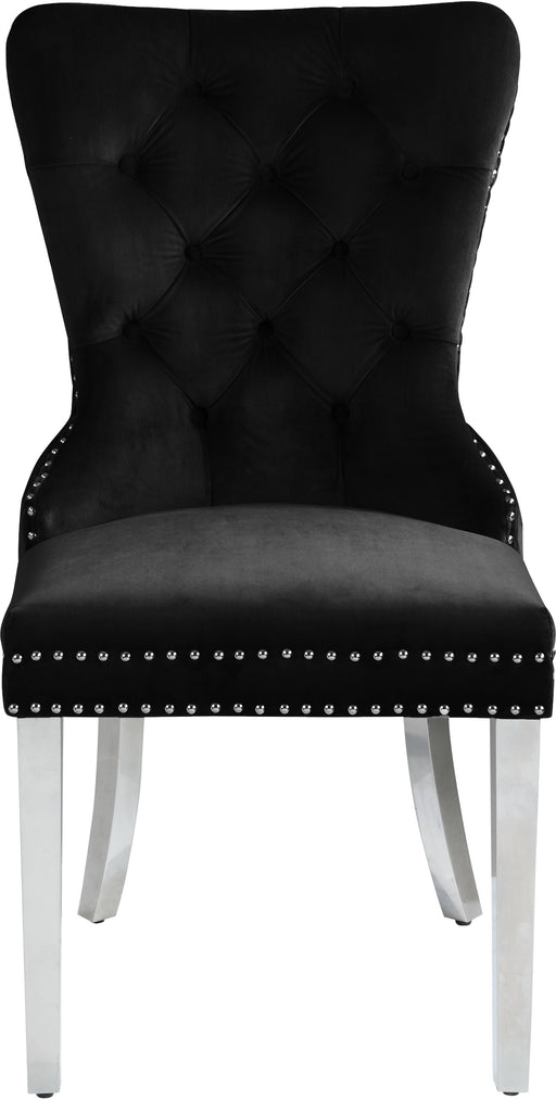 MeridianTransform your living space into a chic haven with this Carmen Black Velvet Dining Chair. This eye-catching high-back chair offers plenty of back s...