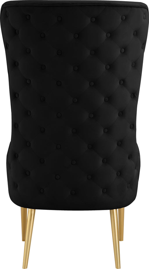 MeridianAlexander Black Velvet Accent Chair - Soft Black Velvet - Gold Metal Legs - Deep Button Tufting - High Back Chair