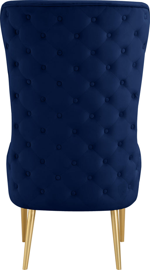 MeridianAlexander Navy Velvet Accent Chair - Soft Navy Velvet - Gold Metal Legs - Deep Button Tufting - High Back Chair