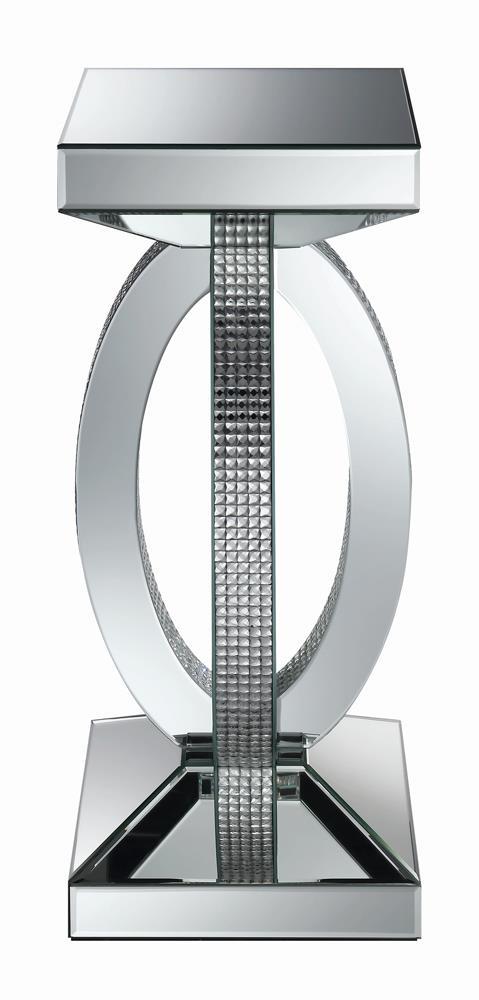 Coaster Z2 PremiumThis mirrored console table features an elegant design with a rectangular top and bold, oval-shaped bases. The base is adorned with acrylic crystal...
