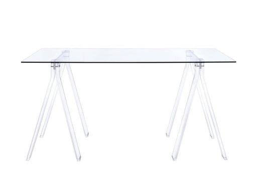Coaster Z2 PremiumEnjoy an airy workspace with this 59-inch writing desk, pairing a sleek acrylic sawhorse base and a clear tempered glass top. Heavy gauge steel sup...