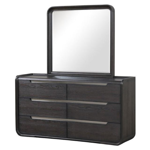 FOA EastModern Contemporary Light Gray Solid Poplar, Elm Veneer, Engineered Wood, Fabric, Stainless Steel Ball-Bearing Glide Beveled Mirror Rounded Edges