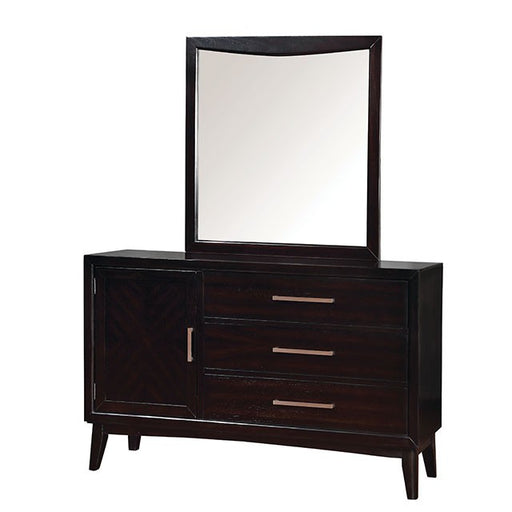 FOA EastSNYDER Brown Cherry Mirror, 36"W X 38"H X 3/4"D, 24.2lbs. Gorgeous lines and sleek bases give this bedroom furniture a distinctive contemporary edg...