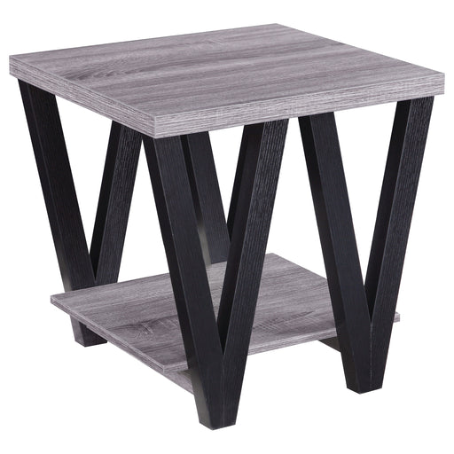 Coaster Z2 PremiumThis modern end table combines style and functionality, perfect for contemporary living spaces. The square grey wood-look top and lower shelf, craf...