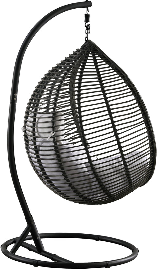 MeridianTarzan Dark Grey Outdoor Patio Swing Chair - Dark Grey Rattan Swing - Matte Black Metal Base - White Resilient Waterproof Fabric - Indoor/Outdo...