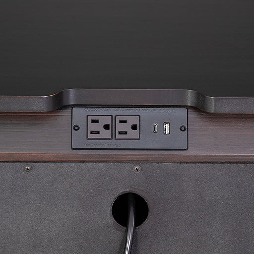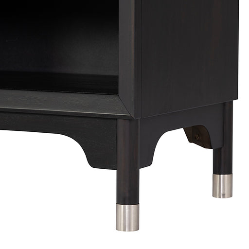 FOA EastMid-Century Modern Black Solid Wood, Acacia Veneer, Engineered Wood USB-A & USB-C Charging Ports Silver-Capped Legs Silver Round Knobs Ball-Be...