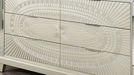 FOA EastVALLETTA Dresser, 66 1/4"W X 18"D X 40"H, 226.6lbs. Gracing the panels of this dresser is an intricate play of radial and circular lines, engraved ...